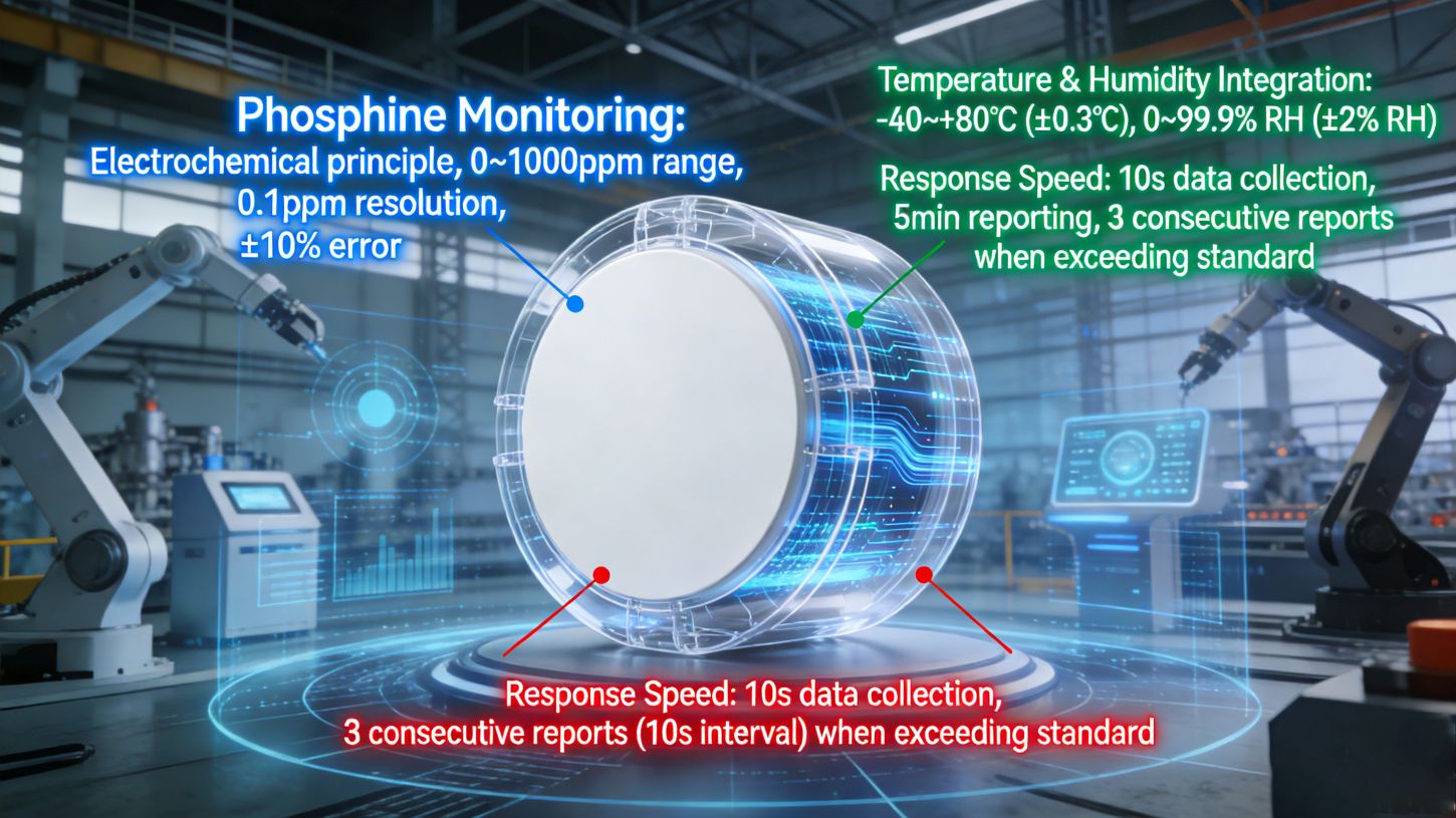 Verify Parameters: Confirm whether the phosphine measurement range and accuracy meet industry compliance requirements, and whether additional configuration is needed for temperature and humidity monitoring. Its integrated design can basically cover most needs.
