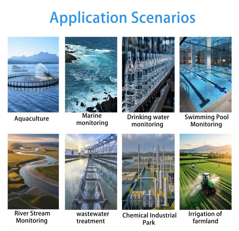 Este sensor de conductividad eléctrica se usa ampliamente para garantizar la seguridad y la calidad en diversas aplicaciones, incluidas la acuicultura, el monitoreo marino, el tratamiento de agua potable, las operaciones de piscinas, el monitoreo de ríos/arroyos, el tratamiento de aguas residuales, los parques industriales químicos y el riego de tierras agrícolas.