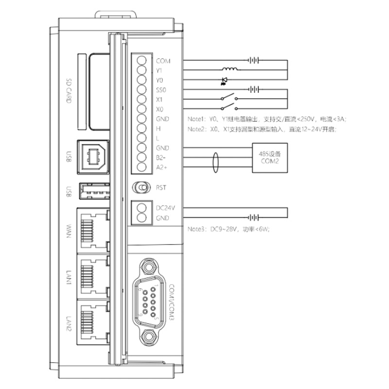 Cobertura completa de interfaces: Equipado con interfaces industriales estándar, incluyendo RS485 / RS232 / Ethernet, lo que garantiza una conectividad de red cableada flexible.