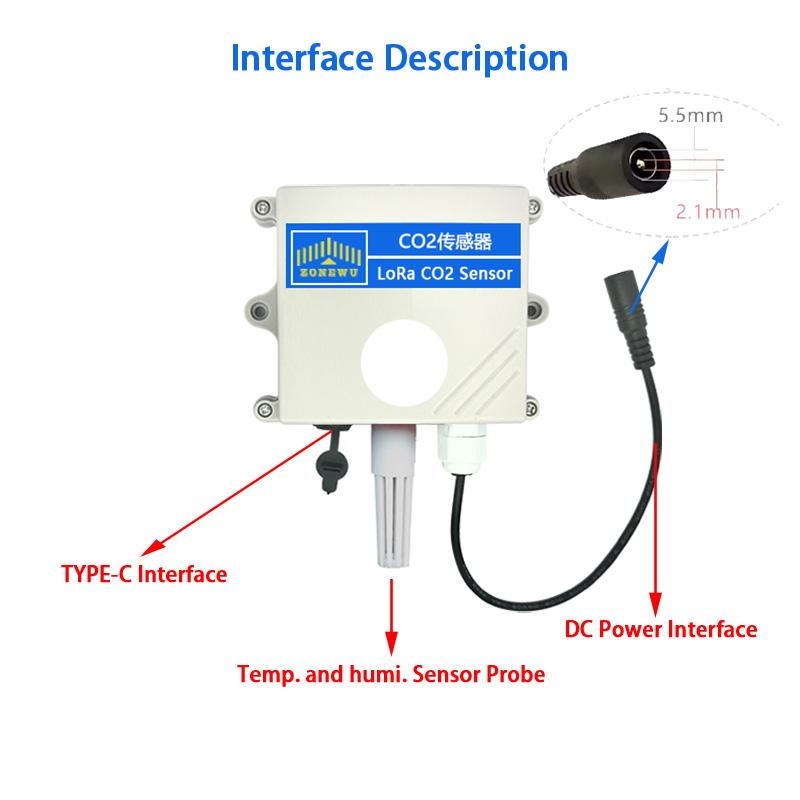 1 YearSensor de temperatura y humedad de CO2 LoRaWAN de ZONEWU