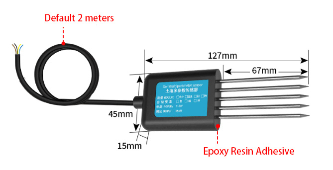 Temperatura, humedad y conductividad eléctrica (CE), se centra en la detección de nutrientes agrícolas esenciales y el valor de pH. Puede medir con precisión el contenido de nitrógeno, fósforo y potasio (NPK) del suelo y el nivel de pH, lo que permite a los agricultores comprender plenamente la fertilidad del suelo y su estado ácido-base. Esto evita la fertilización a ciegas y proporciona datos de apoyo para la formulación de planes precisos de gestión del agua y los fertilizantes para los cultivos, lo que lo distingue de los sensores de suelo básicos que solo monitorean la temperatura y la humedad.